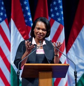ABD'nin eski Dışişleri Bakanı Condoleezza Rice, Libya'nın öldürülen lideri Muammer Kaddafi'nin kendisine olan ilgisini tuhaf ve biraz ürkütücüydü diye tarif ettiCNN International'da dün gece yayınlanan bir programa çıkan Rice, Kaddafi'nin yaptırdığı ve kendi fotoğraflarından oluşan videoyu gördüğünde müstehcen bir şey yer almadığı için rahat bir nefes aldığını söylediBir seferinde Kaddafi'nin kendisi için hazırlattığı videoyu izlettirdiğini söyleyen Rice, videoda yer alan Beyaz Saray'da Siyah Bir Gül adlı şarkının da Kaddafi tarafından kendisi için bestelettirildiğini anlattıVideoyu izlediğinde neler hissettiğinin sorulması üzerine Rice, oldukça sıra dışıydı, tuhaftı ve biraz da ürkütücüydü dedi Kaddafi'nin kendisine olan takıntısını daha önceden bildiğini belirten Rice, videoyu Libya ziyareti sırasında Kaddafi ile birlikte izlediğini, izledikten sonra da iş konuşmaya devam etmek için uğraştığını söylediKaddafi'nin kendisi hakkında bir video izlettireceğini söylediğinde çok korktuğunu anlatan Rice, uygunsuz bir şey çıkmayınca rahatladığını ifade etti AA