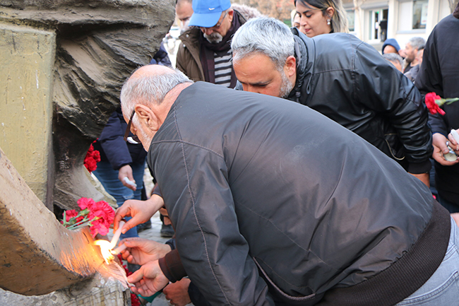 Depremde yaşamını yitirilenler için Dersim’de İnsan Hakları Heykeli önünde anma yapıldı. Anma öncesi Dersim Emek ve Demokrasi Platformu adına TMMOB Dersim İKK Sekreteri Uğur Beycan açıklama yaptı. Açıklamanın ardından İnsan Hakları Heykeline karanfiller bırakılıp çerağlar uyandırıldı.