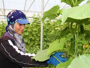 Geçen sene kuraklıktan dolayı verim alamayan çiftçi Erbek bu sene artan sıcaklarla birlikte 45 derecenin altında salatalık hasadına devam ediyor.