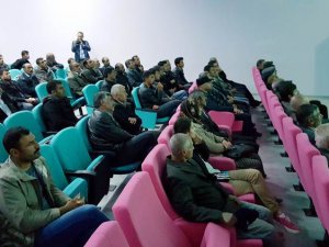 Sinema salonunda düzenlenen toplantıya, Gıda, Tarım ve Hayvancılık İlçe Müdürü İlhan Özen, Ziraat Odası Başkanı İsmet Aksakallı, Köy ve Mahalle Muhtarları ile Çiftçiler katıldı.