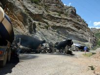 Karakol inşaatına çalışan 5 kamyon yakıldı