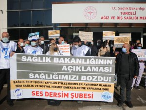 Açıklamayı okuyan SES Dersim Şube sözcüsü Handan Kahraman, “Sağlık ve sosyal hizmet emekçileri olarak yılladır “sağlıkta dönüşüm” adı ile ifade edilen, halk ve emekçiler lehine olmayan uygulamalara karşı alanlardayız. Bu güne kadar uygulanan bu politikalara karşı dediğimiz her konuda maalesef haklı çıktık. Hizmeti üretenlerin ve halkın temsilcilerinin içinde yer olmadığı bir programın başarı şansı olmadığını söyledik. Kapitalist üretim-tüketim ilişkilerine indirgenen sağlık ve sosyal hizmetlerde başarı olmaz dedik. COVID-19 pandemisi ile kapitalist sağlık sistemlerinin tümünün çöktüğünü, nasıl aciz kaldığını tüm dünyada gördük. Devrim gibi anlatılan bu projelerin Türkiye’de de nasıl çöktüğüne hep birlikte şahit olduk”dedi.